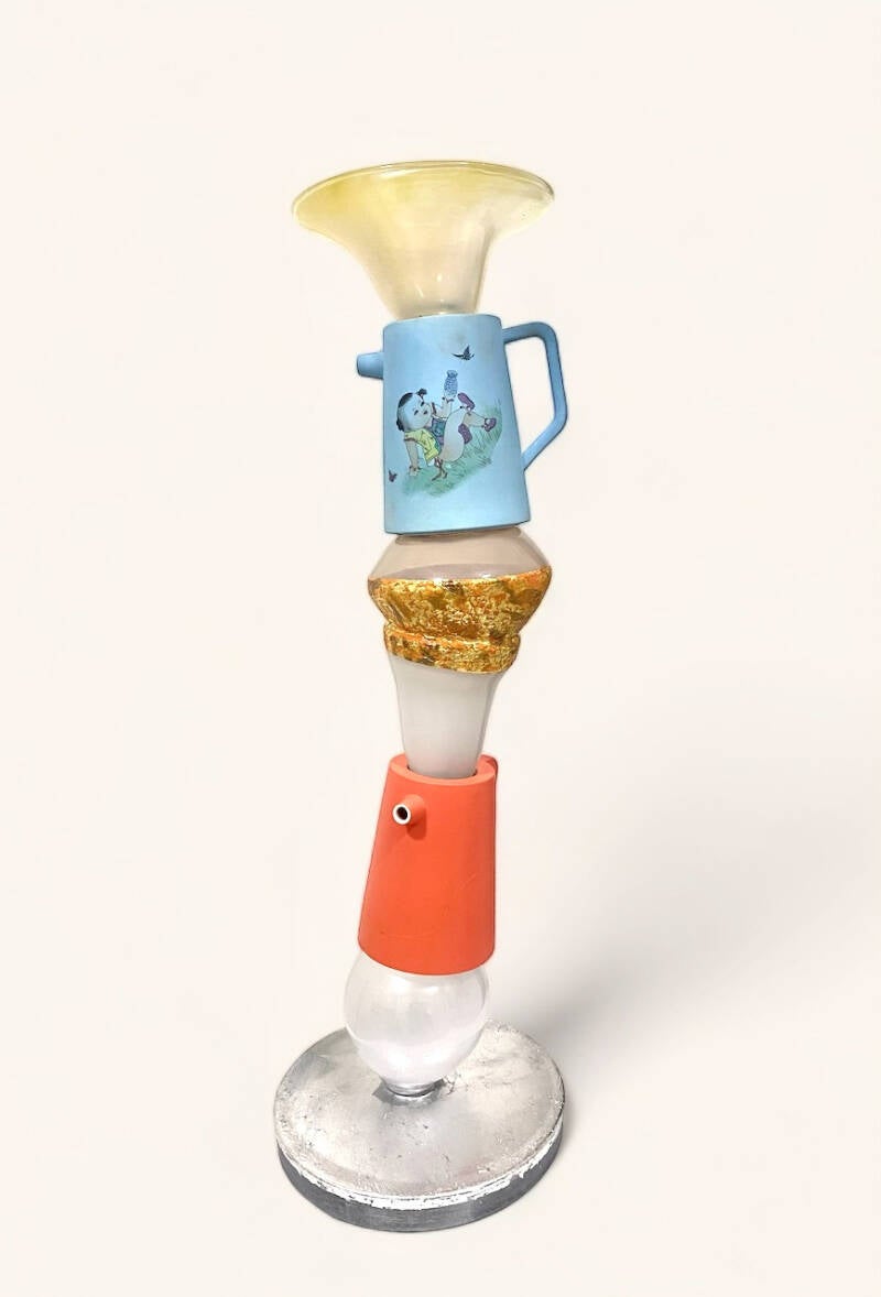 Since graduated from Rietveld 1989, working as an artist in the Netherlands. Mainly making glass sculptures using electoric oven casting. A long run series "Shoerealism" are quite known. Recently at the studio residencies glass blowing works were made.